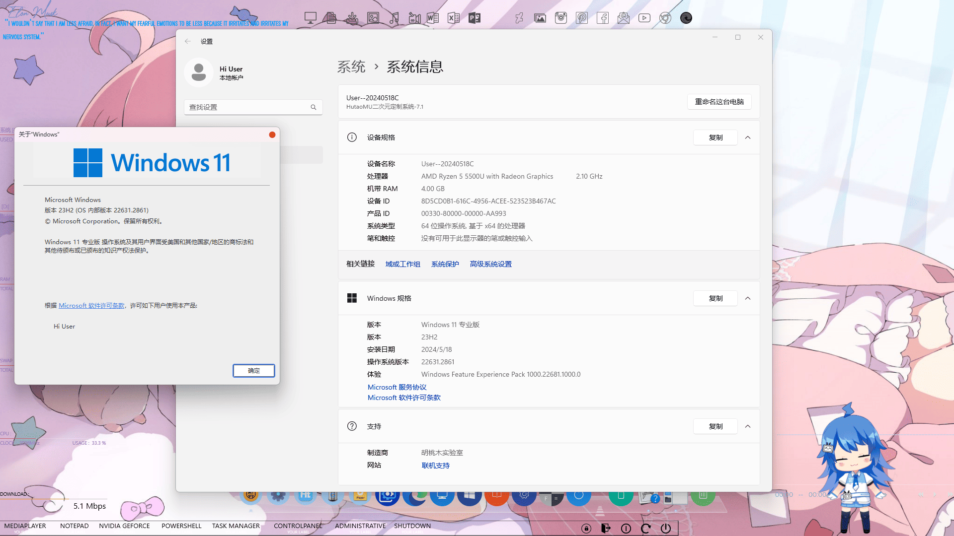不是PPT,来亲手把二次元老婆装进电脑吧!超好看的Windows11ACG二次元定制版V7.0【系统定制】【HutaoMU OS】